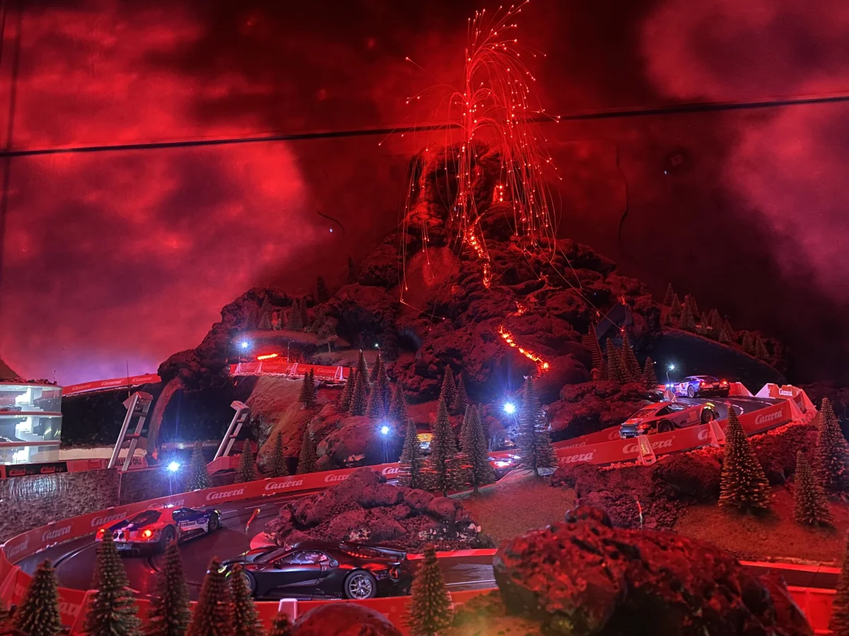 Až šest vozů na dráze, možnost předjíždění, jízdy v noci či při výbuchu sopky!